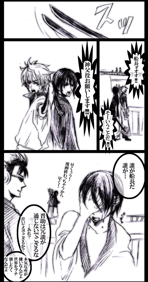 『パ/イ/レ/ー/ツ/・/オ/ブ/・/カ/リ/ビ/ア/ン~ワールドエンド~』のパロディですが、観てなくても全然大丈夫だと思います。紅桜編の感動を汚されたくない方、発売12月5日に迫った『パイレーツ~』のネタバレを見たくない方はご覧にならない方がいいと思われます。
